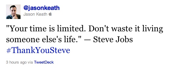 How has Steve Jobs inspired you? I’m collecting responses for a second, more in-depth tribute post. Please share in the comment section below.