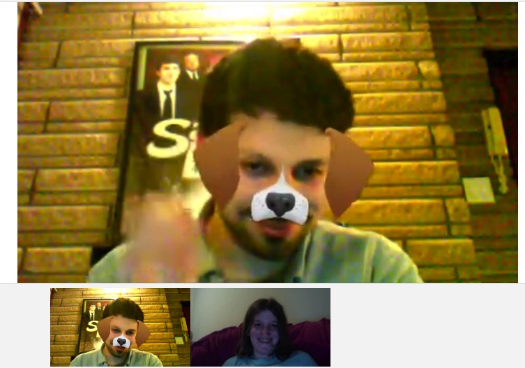Puppy dog faces in G+ hangouts? Yes please. My friend taught me how to make puppy dog faces, angel halos and devil horns in G+ hangouts!
